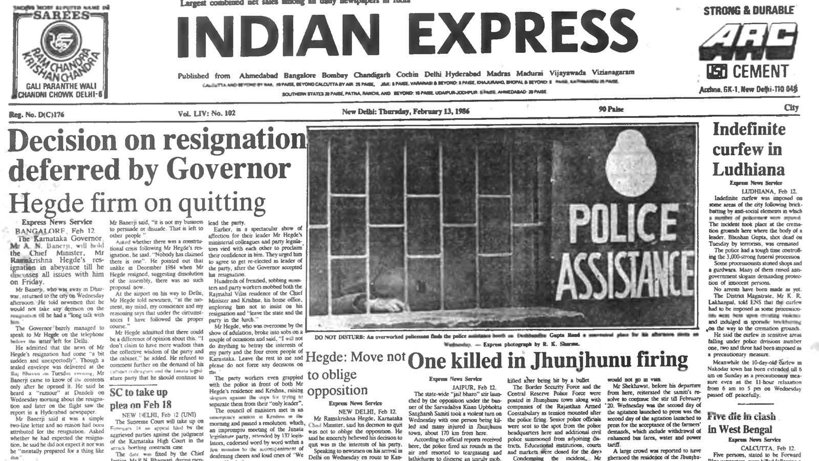 The Karnataka governor, A N Banerji, will hold CM Ramakrishna Hegde’s resignation in abeyance till he discusses all issues with him. Banerji, who was away, returned to the city and told newsmen that he would not take any decision on the resignation till he had a “long talk” with Hegde.