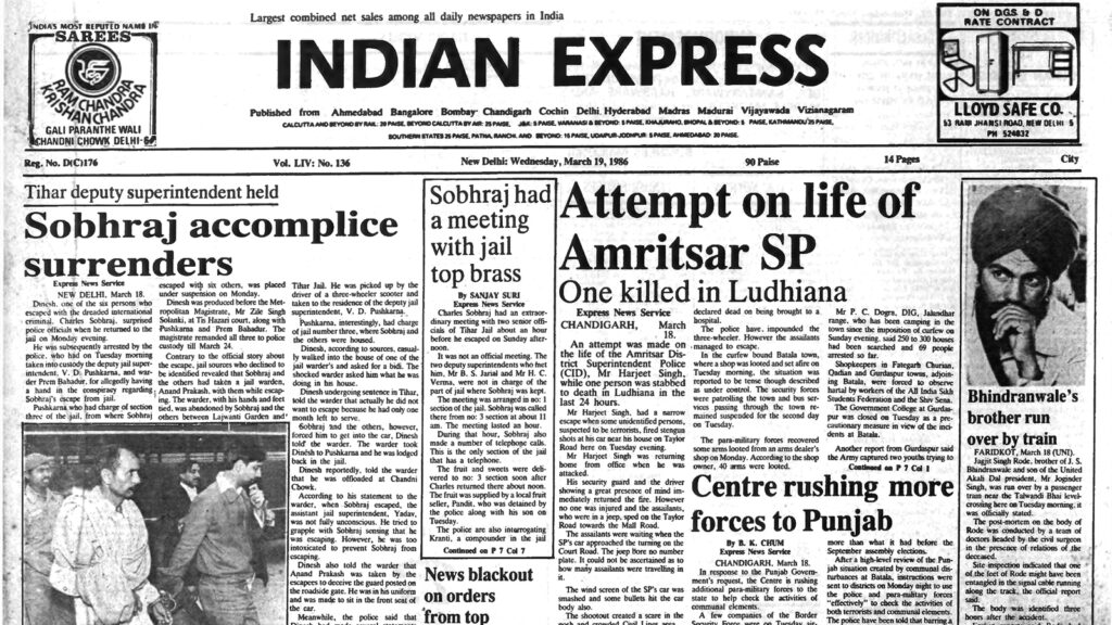 Charles Sobhraj, the dreaded international criminal, had an extraordinary meeting with two senior officials of Tihar Central Jail about an hour before he escaped. It was not an official meeting. The two deputy superintendents who met him, B S Jarial and H C Verma, were not in charge of the part of jail where Sobhraj was kept. The meeting was arranged in no: 1 section of the jail. Sobhraj was called there from no: 3 section at about 11 am. The meeting lasted an hour.