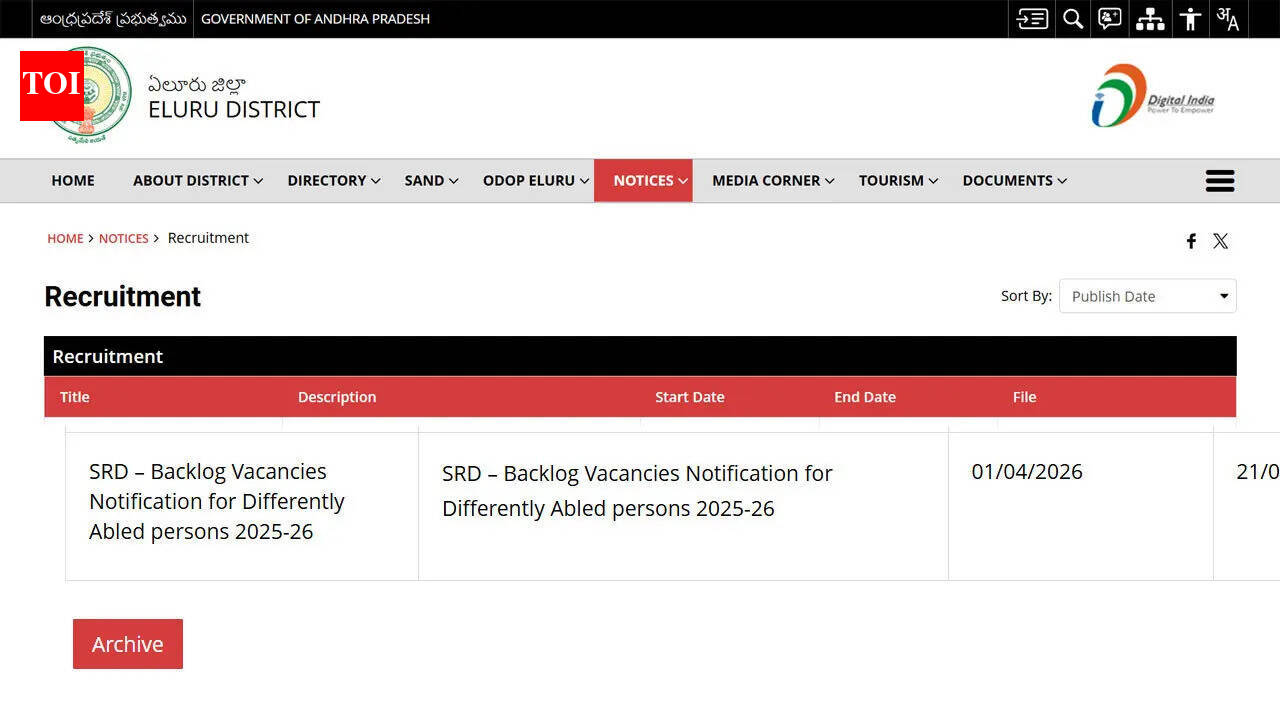 AP collectorate office recruitment 2026: Eluru District Collectorate Office has issued a recruitment notification for 29 posts under the Department of Women, Children, Disabled and Senior Citizens for 2026. The vacancies include Junior Assistant, Typist, Office Subordinate and Gang Mazdoor positions. Eligible candidates may submit applications in offline mode through the official portal eluru.ap.gov.in within the prescribed schedule.Post date for the recruitment notification is 08-04-2026. The application process commenced on 01-04-2026 and will remain open until 21-04-2026, which is the last date for submission.Vacancy distribution detailsOf the total 29 posts, Junior Assistant accounts for 14 vacancies, Typist for 3 posts, Office Subordinate for 11 posts and Gang Mazdoor for 1 post.Eligibility criteriaCandidates applying for Junior Assistant and Typist posts must hold any degree along with proficiency in office automation and usage of computers and associated software test. Applicants for Office Subordinate and Gang Mazdoor posts must have passed 7th class examination.Age limit and relaxationMinimum age is 18 years and maximum age is 52 years. Candidates belonging to PWD category are eligible for age relaxation of 10 years as per rules.• Check and download the official notification here• Direct link to check and download the application formPay scale detailsSelected candidates will receive a salary in the range of 25,220 to 80,910 rupees per month as per notification.Application fee and procedureNo application fee has been prescribed in the official notification. Candidates must apply in offline mode through the AP Collector Office website at eluru.ap.gov.in.Key dates and descriptionRecruitment notification date – April 08, 2026. Offline application commencement – April 01, 2026 to April 21, 2026.Selection procedure and notification linkApplicants will get shortlisted on the basis of eligibility criterion described in the recruitment notification issued by the Department of Women, Children, Disabled and Senior Citizens. It is recommended that the candidates take guidance from the notification PDF file at the website of eluru.ap.gov.in. This recruitment process is organized to recruit suitable candidates for the vacancies of Junior Assistant, Typist, Office Subordinate and Gang Mazdoor positions for 2026.It is essential that all candidates send their applications in offline form within the specified timeframe only. Incomplete applications or those received after the deadline will not be processed by the organization concerned. It is incumbent upon the applicants to check their eligibility as per the recruitment notification.