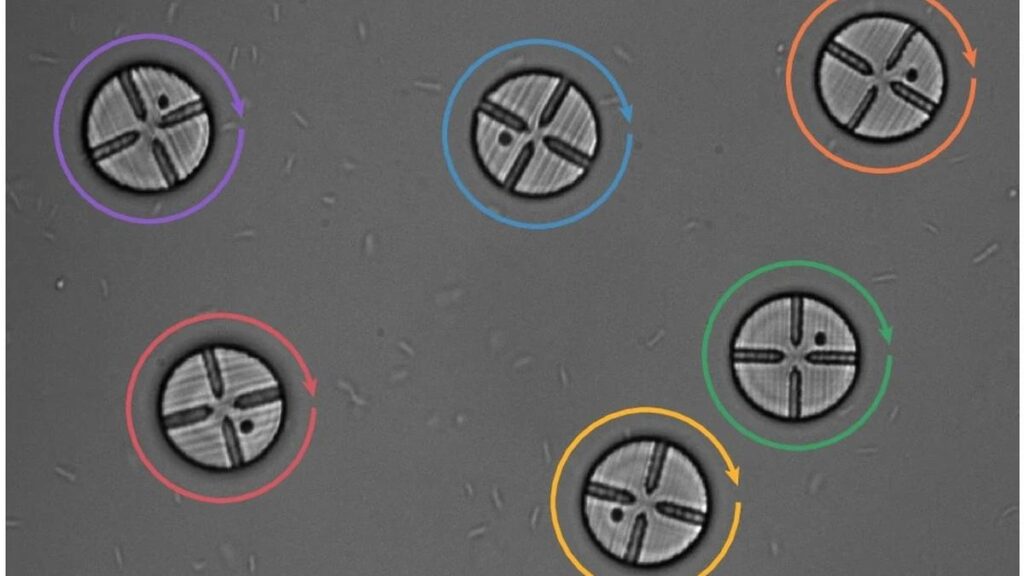 In an experiment with six pucks with narrow channels suspended in a bath of E. coli, all pucks spun clockwise. Scientists said this marks the first step towards developing ‘chiral fluids’.