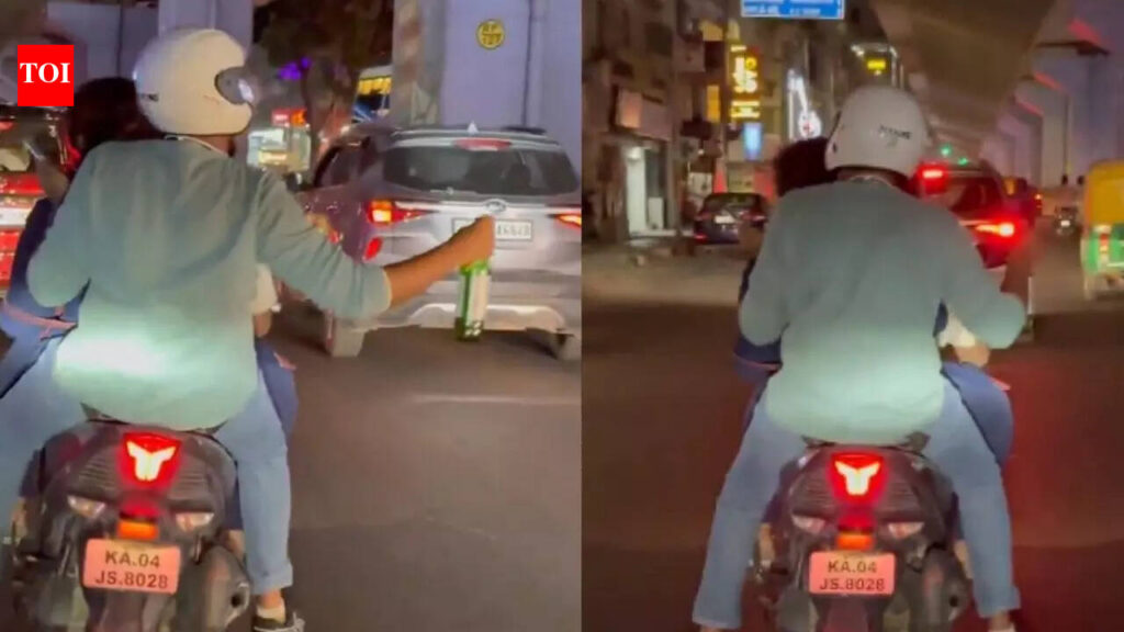BENGALURU: Three doctors, including a woman, celebrating completion of master of science (MS) in orthopaedics, were booked for riding triple on a two-wheeler on a public road.Two of them were without helmet. One of the pillion riders, who was wearing a helmet, was drinking from what looked like a beer bottle while riding in the midst of traffic. Acting suo motu, police registered the FIR for rash or negligent riding on a public way The incident took place on 16th Main between BTM Layout and Jayadeva Junction around 10pm Sunday.A video of the incident shot by a commuter and uploaded on social media went viral, drawing sharp criticism from netizens. The doctors have been identified as bike rider Dhanush, 30, from Yeshwantpur who works with Sapthagiri Medical College in Chikkabanavara; Apoorva aka Prapurna, 30, from Bommanahalli and employed with Vydehi Hospital; and Avinash, 37, of MC Layout, part of Chamundeshwari Medical College, Channapatna, Bengaluru South district.The FIR against the three was registered for rash or negligent riding on a public way that endangers human life or safety and punishment of certain street offences and nuisance.Acting suo motu, Mico Layout traffic police registered a case. With the help of vehicle number (KA-04JS-8028), they contacted its owner Dhanush. “With Dhanush’s help, we summoned Apoorva and Avinash to the police station. Confessing to their act, the three told us they partied at a bar and restaurant to celebrate the completion of MS in orthopaedics. Before leaving, Avinash took the half-emptied beer bottle with him. Holding the same, he rode pillion with Dhanush and Apoorva,” a police officer said.750 booked for drunk driving, speedingIn a bid to enhance road safety and curb reckless driving, traffic police conducted a week-long special enforcement drive targeting drunk driving and over-speeding across Bengaluru. The drive, held between March 16 and March 22, saw intensive checks by officers from 53 traffic police stations.During the operation, 45,568 vehicles were inspected and 634 cases registered against violators found driving under the influence of alcohol. The drive also focused on over-speeding, with 122 cases booked against motorists flouting speed limits. Authorities collected Rs 1.3 lakh from offenders during the campaign.