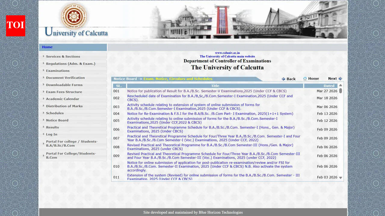 CU UG semester 5 results 2026: Calcutta University has released the results for the fifth semester of its undergraduate courses, covering Bachelor of Arts and Bachelor of Science programmes. The announcement was made today, with results scheduled to go live on official digital platforms at 2:00 PM.The results include examinations conducted under both the Choice Based Credit System and the Curriculum and Credit Framework. Students who appeared for the semester examinations can now access their subject-wise scores through the university’s designated online portals.How students can check their resultsCandidates are required to visit the official result websites to obtain their marksheets. To log in, students must enter their 12-digit roll number. University officials have specified that while entering the roll number, the hyphen should be omitted for both CBCS and CCF streams.• Direct link to check and download the CU result 2026The results have been made available across multiple platforms to ensure accessibility. These include the university’s official result portal as well as the respective websites of affiliated colleges. This arrangement allows students to retrieve their results without delay.Access to consolidated data for collegesAlongside individual results, the university has provided access to consolidated data for affiliated institutions. Soft copies of the college-wise consolidated gazette have been uploaded for institutional use. These records also include tabulated gazettes for BA and BSc Semester V examinations.The digital gazettes are intended to assist colleges in maintaining academic records and verifying student performance efficiently. Institutions can access these documents through their respective portals.Distribution of physical documents scheduledThe university has also outlined the process for issuing physical copies of results. College-wise gazettes and individual grade cards will be distributed to authorised representatives of affiliated colleges.The distribution is scheduled for April 8, 2026, beginning at 2:30 PM. Representatives have been instructed to collect the documents from the Result Major and Computer Cell-I section of the university.Students are advised to download and retain their online marksheets for immediate reference. Physical grade cards will be made available through their respective colleges following the scheduled distribution.