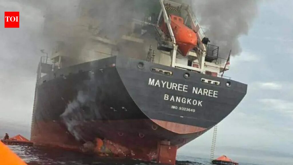 NEW DELHI: An India-bound Thai cargo vessel with 23 crew members was among four ships that came under attack in the Strait of Hormuz on Wednesday. The projectile attack left the ship heading for Gujarat’s Kandla port ablaze. While 20 crew members have been rescued by the Omani Navy, the fate of three sailors is unknown.Reacting to the attack on Gujarat-bound Mayuree Naree, the Indian govt deplored commercial shipping being made a target of military attacks in the Gulf conflict. “Precious lives, including of Indian citizens, have already been lost in multiple such attacks in the earlier phase of this conflict, and the intensity and lethality of the attacks only seems to be increasing,” the govt said in a statement.India also reiterated that targeting commercial shipping and endangering the lives of innocent civilian crew members, or generally impeding freedom of navigation and commerce, must be avoided.Iran’s Islamic Revolutionary Guard Corps (IRGC) claimed striking two ships — Thai bulk carrier Mayuree Naree and a Liberian-flagged ship in the Hormuz. “Israeli-owned Express Rome ship, flying the Liberian flag, and container ship Mayuree Naree were hit by Iranian projectiles and stopped after ignoring the warnings of IRGC naval forces,” Iran’s ISNA news agency cited the Guards’ statement.The third vessel, Japan-flagged container ship One Majesty, sustained minor damage after it was hit by another projectile 25 nautical miles northwest of UAE’s Ras Al Khaimah. The hull of Marshall Islands-flagged bulk carrier Star Gwyneth was damaged after being hit by a projectile 50 nautical miles northwest of Dubai, maritime risk management company Vanguard said.IRGC has warned that any ship passing through the narrow strait will be targeted. With the conflict now in its 12th day, IRGC has also vowed to target “economic centres and banks” that it deems linked to US and Israeli interests, prompting more international firms to evacuate employees from Dubai.As many as 28 Indian vessels with 778 seafarers on board are stuck in the Persian Gulf, an official said on Wednesday. Of these, 24 vessels are on the western part of the strait with 677 seafarers, while four vessels with 101 persons are on the eastern side, Rajesh Kumar Sinha, special secretary in the ministry of ports, shipping and waterways, said.“We are monitoring all the vessels actively for their safety and security. Authorities, ship managers and recruitment agencies…are closely coordinating with Indian embassies and local authorities to ensure safety and render medical assistance to them,” the official said. Dedicated 24-hour control rooms are operating in the ministry and DG Shipping.