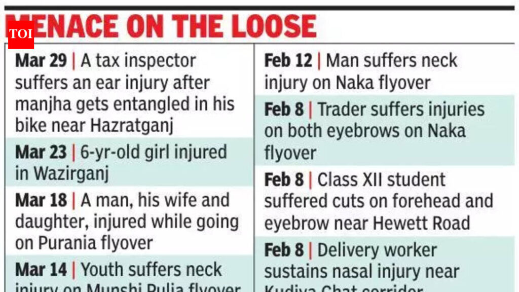 Lucknow: Flyovers across Lucknow have emerged as major danger zones due to the increasing menace of hazardous kite string, or “manjha”, with one person killed and at least 21 injured—many seriously—over the past one-and-a-half months. Data compiled from recent incidents shows that more than half of the accidents occurred on key flyovers, particularly at Naka, Chowk, Hussainganj, and Nakkhas. At least seven accidents have been reported on flyovers in the last 45 days alone, including five on the busy Naka flyover. Other major incidents were recorded at KGMU, Haiderganj, and Purnia flyovers. The most tragic case occurred on Feb 4 at the Haiderganj flyover, where Mohammad Shoaib, a medical representative, died after his throat was slit by the sharp string while commuting. A road safety expert, Vinod Acharya, said that flyovers have emerged as hotspots for manjha-related injuries due to a combination of speed and exposure. “On flyovers, two-wheeler riders travel at higher speeds and are more exposed, unlike congested inner roads. The thin, nearly invisible manjha gets stretched across open spaces and, at high velocity, acts like a sharp blade—often hitting the neck or face before the rider even notices,” said the expert. He added that the lack of trees, poles, and obstructions on flyovers allows the kite string to remain suspended at dangerous heights, increasing the risk of severe injuries. Despite the seriousness of the incidents, enforcement remains weak. At least six FIRs, including charges of culpable homicide not amounting to murder, have been registered at police stations such as Bazar Khala, Hussainganj, and Chowk. However, not a single arrest has been made so far, and in several cases, the accused remain unidentified. The repeated accidents have sparked demands for stricter enforcement, targeted action against sellers, and preventive measures such as regular checks on flyovers to avert further tragedies. “Bareilly glass-coated manjha is an extremely hazardous variety of kite string prepared by coating synthetic or nylon threads with a paste made of finely crushed glass and strong chemical adhesives,” a senior police officer explained. He said that the majority of injuries caused in Lucknow cases were from manjha from Bareilly district. “This process gives the thread a razor-sharp edge and significantly increases its tensile strength, making it far more dangerous than traditional cotton manjha.” The officer said that unlike conventional kite strings, which tend to snap under pressure, glass-coated manjha remains intact and can stretch across roads, especially on open stretches. He further noted that this variety is commonly manufactured and supplied from Bareilly and nearby regions, and despite bans, it continues to be sold illegally due to its popularity in competitive kite flying.