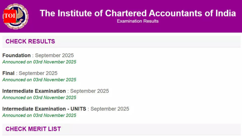 ICAI CA Final result 2026: The Institute of Chartered Accountants of India is set to declare the CA Final Examination result for the November 2025 session today, March 1, 2026. Thousands of candidates who appeared for the examination are awaiting the outcome, which will be released on the official websites.The Institute had earlier notified that the results would be made available online on Sunday. CA Final is considered to be one of the most challenging professional exams in the country. Once the results are announced, the students would have moved a step closer to becoming Chartered Accountants.Where to check the CA Final ResultThe results would be declared in online mode only. The students would be able to access their results through the official portals: icai.nic.in, icaiexam.icai.org, and caresults.icai.org. It has been advised to the students to rely only on these portals to get the latest information on the results.To access the results, the students would have to log on to any of the official portals and click on the ‘CA Final Result Jan 2026’ link on the homepage. Then, the students would have to enter the roll number along with the PIN/Registration Number. After this, the students would have to click on the ‘Submit’ button after entering the captcha code that is visible on the screen. Once the ‘Submit’ button is clicked, the results would appear on the screen.Result to be available through email facilityBesides the website, the Institute has also offered an email facility to the candidates. The candidates, if they have registered their email addresses on the official website, will be sent the scorecards to their email accounts once the result is declared.Merit list and pass percentage detailsAlong with the result, the ICAI will also release the merit list of the top 50 rank holders across the country. Also, the pass percentage of the students of both groups, as well as the combined pass percentage of both groups, will be released.The students who have passed both groups will be eligible to become members of the Institute of Chartered Accountants of India by using the designation of Chartered Accountants. The students who have not passed the examination can attempt the next examination after preparing well.