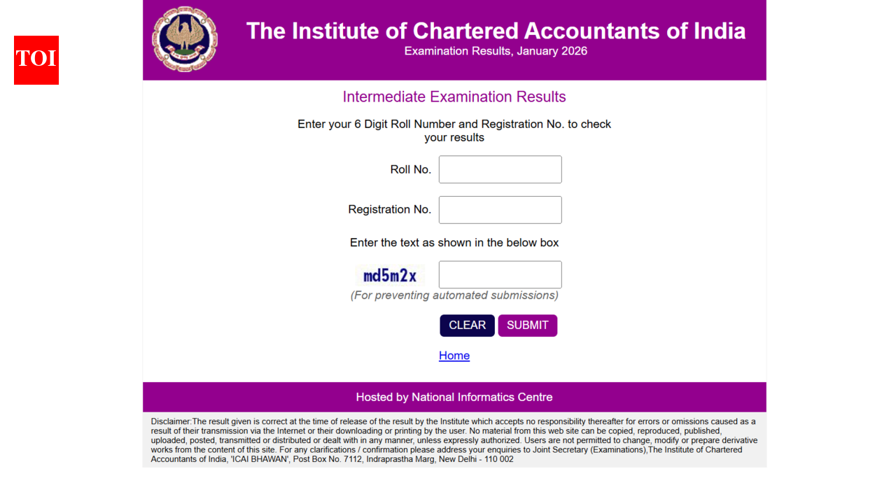 The Institute of Chartered Accountants of India (ICAI) has declared the results of the Chartered Accountancy Foundation and Intermediate examinations conducted in January 2026 today, on March 8, 2026. Candidates who appeared for the examinations can check and download their scorecards from the official portal, icai.nic.in.The ICAI released the results in online mode. Students are required to enter their registration number and roll number to view their results.
