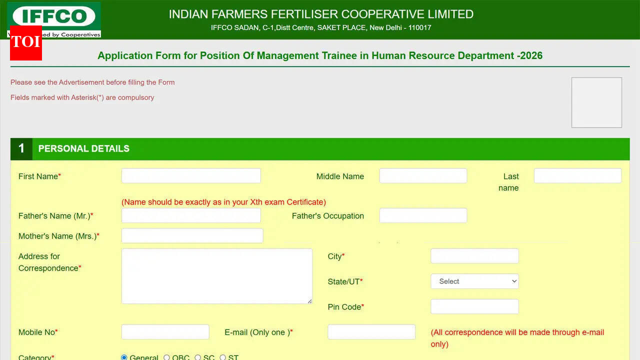 IFFCO recruitment 2026: The Indian Farmers Fertiliser Cooperative Limited has issued an official notification inviting applications for the post of Management Trainee in Human Resource. The recruitment will be conducted for placements across its establishments located PAN India, with transferability to existing or future units and subsidiaries.Candidates who fulfill the requisite eligibility criteria will be able to apply through the website. The organisation has made it clear that applications received through any other medium will be considered invalid. The deadline for receipt of application forms is April 29, 2026.Eligibility Criteria and Educational QualificationThe applicants should have completed an MBA program integrated over a period of five years or a regular two-year full time MBA/PGDM programme in Human Resource or Personnel Management from a premier university/institute recognized by UGC/AICTE. All candidates must be familiar with computer operation.Candidates belonging to General and OBC categories must obtain a minimum of 60% marks whereas those from SC and ST categories need a minimum of 55%. Applicants having CGPA scores should convert the same into percentages at the time of applying.Applicants’ upper age limit will be 25 years as of April 30, 2026. Age relaxation is available according to norms, where five years relaxation for SC/ST category applicants and three years for OBC applicants who do not belong to creamy layer.Selection procedure and Training detailsFor selecting eligible applicants from among all the applicants for these posts, the first step would be computer-based online exam. The decision for conducting this test would be made by the organization according to the number of applications received. The candidates called for an interview based on their performance in online test.After passing the interview round, selected candidates would be required to undergo medical test as per norms before selection.During training for one year, the selected candidate would be paid stipend at the rate of about Rs 55,000/- per month including HRA etc.Requirements for language and application procedureProspective applicants should have knowledge of Hindi as well as English. Individuals who are interested in applying are supposed to do so via the official website.