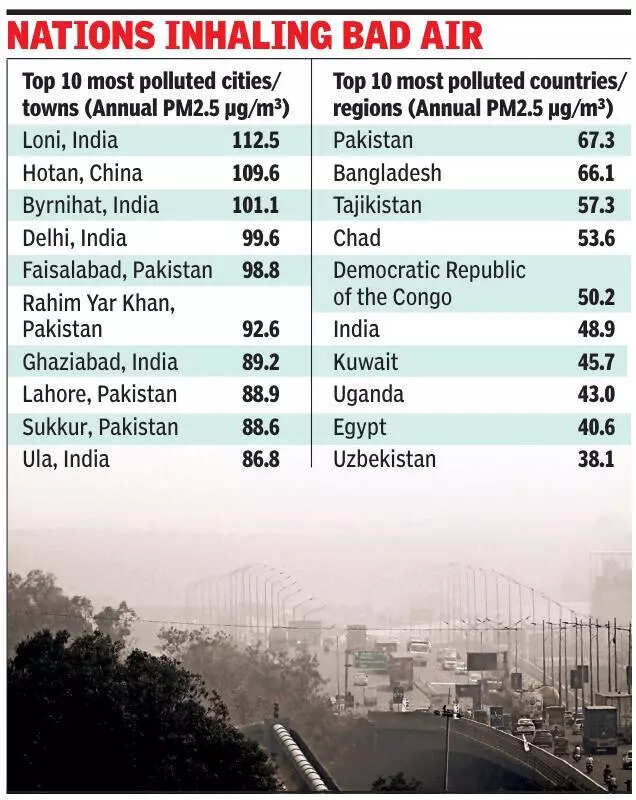 Lucknow: The city has been ranked the 58th most polluted place in the world in 2025, according to a report by Swiss air quality agency IQAir.The report draws from a wide global dataset. It analysed air quality in 9,446 cities/towns across 143 countries using more than 40,000 monitoring stations and sensors. Within India, Lucknow stands at 34th out of 259 that were part of the study. The ranking is based on the city’s annual average PM2.5 level of 54.2 µg/m³ (micrograms per cubic metre). This is nearly 10 times higher than the safe annual average limit of 5 µg/m³ set by the World Health Organisation (WHO). PM2.5 refers to very fine particles in the air that are small enough to enter deep into the lungs and even the bloodstream. Prolonged exposure can cause breathing problems, worsen asthma, and increase the risk of heart disease, stroke, and lung cancer. Children, the elderly, and those with existing health conditions are especially vulnerable, as the damage caused in the early stages can be long-lasting. Experts say everyday factors are driving this pollution. These include poor roads, potholes, dust, vehicle emissions, and construction and demolition waste. India remains 6th among the worst affected, with 64 cities and towns figuring among the world’s 100 most polluted. The situation is particularly severe in UP. Several cities and towns from the state feature high on the list. Loni, a town in Ghaziabad district, is ranked the most polluted place in the world. Its PM2.5 level is about 12 times higher than WHO limits. Other urban centres in India also show high pollution levels. Ghaziabad ranks 7th, Noida 18th, and Greater Noida follows. Muzaffarnagar is 29th, Hapur 34th, and Baghpat 35th. Bulandshahr ranks 36th, Meerut 42nd, Khurja 67th, Kanpur 146th, and Gorakhpur 150th. Experts say the rankings look worse because global standards are stricter. India’s Central Pollution Control Board allows higher PM2.5 levels than WHO guidelines. This often creates confusion when people compare global and local data. Pulmonologist Prof Ved Prakash from King George’s Medical University said the findings show rising global concern and called for strict action in Lucknow. He said National Green Tribunal norms must be followed to control dust, waste burning, and emissions. Steps like road sweeping, better roads, vehicle checks, public transport, and proper waste handling can help.He added that the World Economic Forum sees air pollution as a major risk, while the United Nations links it to heart disease, stroke, and cancer. The World Health Assembly aims to halve such deaths by 2040.