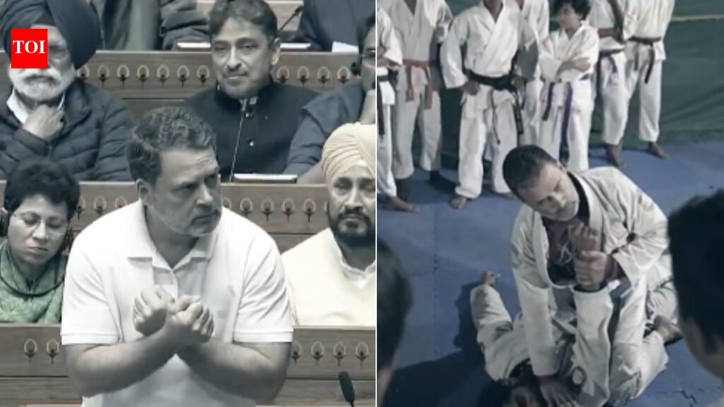 NEW DELHI: Lok Sabha Leader of Opposition on Friday unpacked his fiery “jiu-jitsu” analogy from the Budget Session speech, detailing the “political grips and chokes” squeezing Prime Minister Narendra Modi. In a video post on X, Gandhi highlighted the Gautam Adani indictment, plus the Epstein files that mention Union minister Hardeep Singh Puri and Anil Ambani. He also slammed the India-US trade deal as lopsided, heavily favoring American interests over India’s.“On one side, there is China sitting on our border, and on the other side, there’s the USA. And our Prime Minister is torn between these grips. He’s trapped,” Rahul said, explaining why he used the jiu-jitsu analogy in his Parliament speech during the Budget Session.“The real grip on Mr Narendra Modi is the fake image he has built, that has been built for him. An image that has required huge amounts of money. The key to that image is now in the hands of the US. And that’s why Indian farmers are going to suffer. Indian textiles are going to suffer. We will be forced into buying imports from the US,” he added.