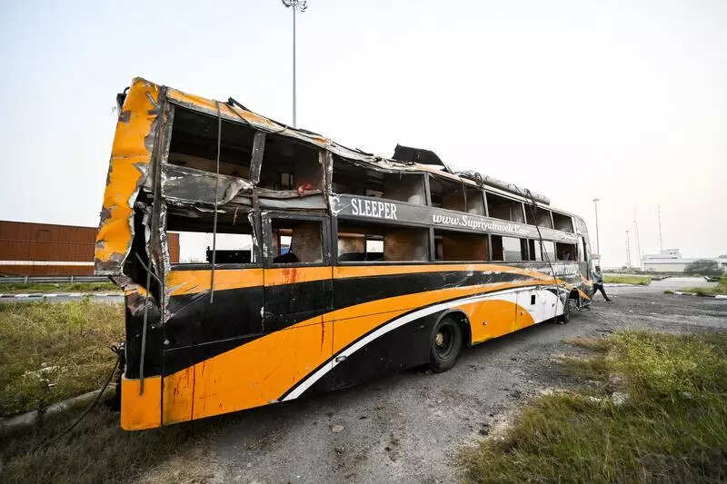 The inspection was conducted by regional inspector Vishnu Kumar, whose preliminary report flagged multiple lapses. The emergency exit system was either non-functional or not equipped with prescribed safety standards, potentially hampering evacuation during the accident. Further, the size of the seats was reduced to install additional units, leading to overcrowding and restricted aisle space. Experts noted that such modifications disturbed load balance, increased instability, and adversely impacted braking and handling, especially at high speeds. Officials suspected deliberate tampering with approved design specifications to maximise revenue, in clear violation of transport and fitness norms. Further action was underway. The technical inspection covered multiple critical components of the vehicle, including the braking system. Officials assessed brake efficiency, checked for fluid leakage, worn-out brake pads or liners, and the proper functioning of the handbrake, which was worn out and required an upgrade. The steering mechanism was examined for excessive free play, along with the condition of joints and linkages. Tyres and wheels were inspected for signs of bursts, blowouts, insufficient tread depth, or structural damage. Authorities also evaluated the vehicle’s structural integrity, including the chassis frame, body condition, door latches, and hinges.