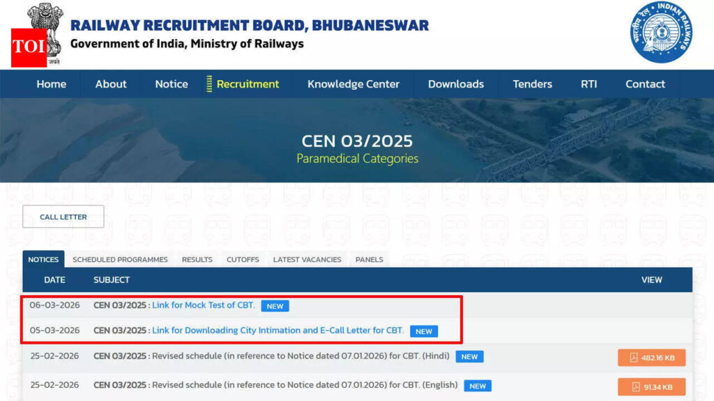 The Railway Recruitment Board (RRB) has released the city intimation slip for CEN No. 03/2025, which includes recruitment for various paramedical positions. The mock test for the Computer Based Test (CBT) is also live along with the city intimation slip, helping the candidates get familiar with the test interface and test format. The e-call letter will soon be released. The CBT will be conducted over three days from March 11 to March 13, 2026.The candidates can check their cities and dates through the official websites of the RRB. The travel authority link for SC/ST candidates will be live ten days before the last date of the exam for their corresponding posts. The official websites will help the candidates access the information accurately and avoid any misleading information from other sources.Release of E-call Letter ScheduleThe e-call letter will be released four days before the exam date mentioned in the Exam City and Date Intimation link. The candidates need to bring two original id proofs to the test venue, one of which should match the id proof provided during the application. Without the id proofs, the candidates will not be allowed entry into the CBT. Mock TestThe link provided for the mock test is active for all applicants. It is recommended that applicants use this facility to get used to the pattern of the questions. Using the mock test provided by the commission would ease the process of the actual CBT, reducing any errors that might arise from lack of familiarity with the online system.Aadhaar Verification RequirementsApplicants who completed the application process by verifying their Aadhaar details need to ensure that their Aadhaar account is unlocked in the UIDAI system. This is a critical step to ensure a smooth process on the actual day of the CBT. It is recommended that applicants verify their accounts before the actual exam date.Official updates and fraud alertThe RRB has reminded candidates to seek information from the official websites only for any updates regarding CEN No. 03/2025. This is because any information from unofficial sources may be misleading. Brokers or agents who claim to provide jobs through any fraud means are not associated with the recruitment process. The recruitment is purely based on merit, depending on the results of the CBT.The Ministry of Railways, Government of India, has confirmed that the guidelines for the procedures set under CEN No. 03/2025 will be based on merit. Candidates need to visit the official websites of RRBs regularly for updates on city intimation slips, e-call letters, mock tests, and travel authorities to prepare well for the examinations.