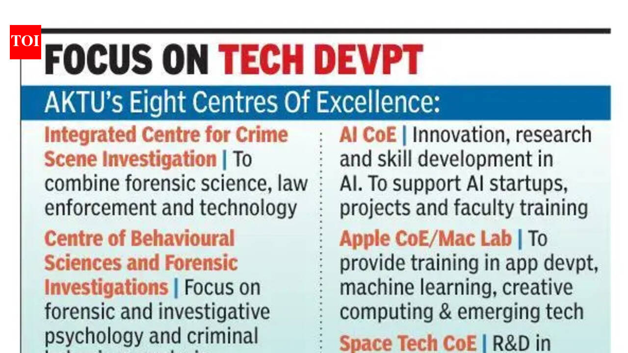 Lucknow: Dr APJ Abdul Kalam Technical University (AKTU) is set to establish eight centres of excellence (CoEs) on its campus at a cost of around Rs 20 crore, in the academic session 2026-27. The proposed laboratories will be in various fields, including crime scene investigation, forensic accounting, financial investigation, space technology and others.They will offer courses to students in emerging sectors, conduct in-depth research and work on technology development. Engineering students of AKTU and students of other universities can also pursue the courses offered by these centres.“Our students and teachers will learn, research, develop software and technologies for forensic investigations and cyber security using advanced computing,” said AKTU vice-chancellor Prof JP Pandey. He said these centres will ensure better forensic and crime investigation capability, stronger cybercrime response and digital evidence expertise, AI and startup ecosystem support, industry-relevant student training, research boost in finance, psychology and space technology, and collaboration opportunities with national and technology institutions.AKTU dean academics, Anuj Sharma said, “These centres will improve law enforcement and help in getting speedy justice.”