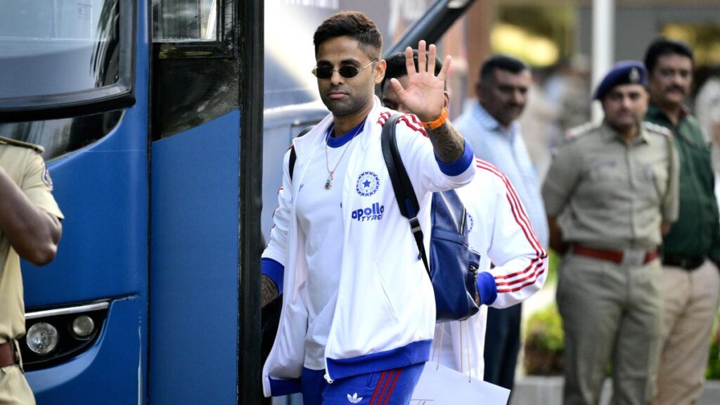 India skipper Suryakumar on his arrival at Ahmedabad on Friday.
