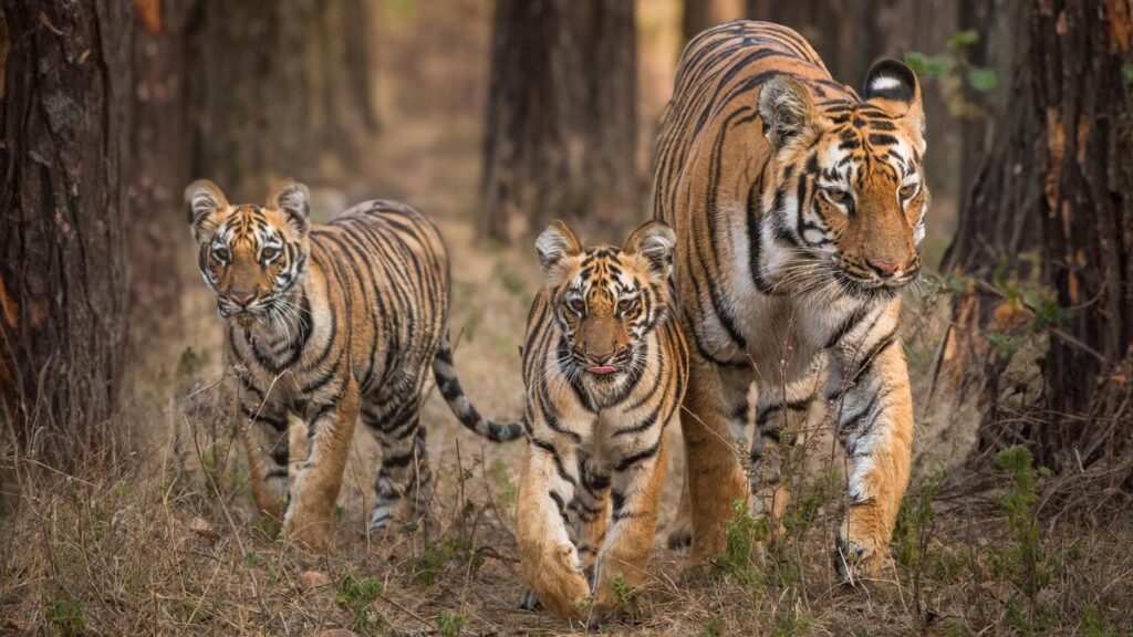Tigress Bhanuskindi with her cubs at the Tadoba-Andhari Tiger Reserve